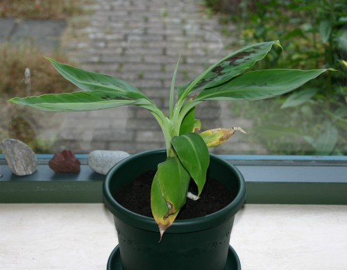 Misschien dat ik binnenkort toch eens moet uitkijken naar een nieuwe behuizing voor deze bananenplant. |